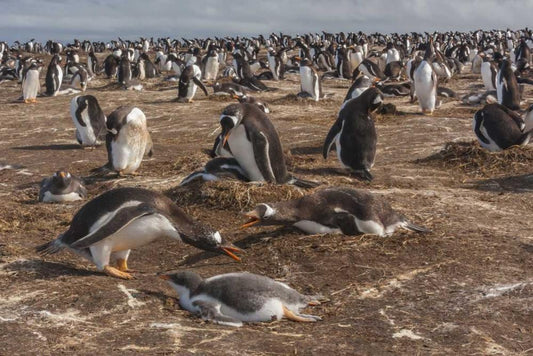 Sea Lion Island Gentoo penguin colony White Modern Wood Framed Art Print with Double Matting by Illg, Cathy and Gordon