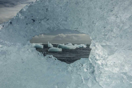Iceland Icebergs viewed through hole in ice White Modern Wood Framed Art Print with Double Matting by Illg, Cathy and Gordon