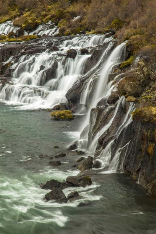 Iceland, Hraunfossar Waterfalls into stream White Modern Wood Framed Art Print with Double Matting by Illg, Cathy and Gordon