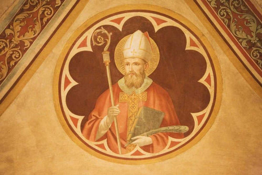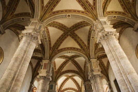 Italy, Fiesole Cathedral San Romolo Fresco White Modern Wood Framed Art Print with Double Matting by Flaherty, Dennis