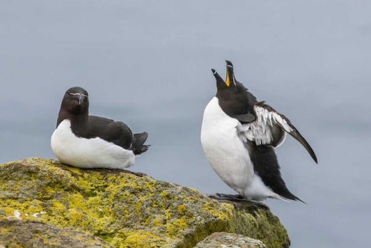 Iceland, Latrabjarg Razorbills in courtship White Modern Wood Framed Art Print with Double Matting by Illg, Cathy and Gordon