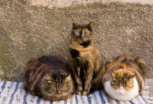 Italy, Vernazza Three cats beside building wall White Modern Wood Framed Art Print with Double Matting by Kaveney, Wendy