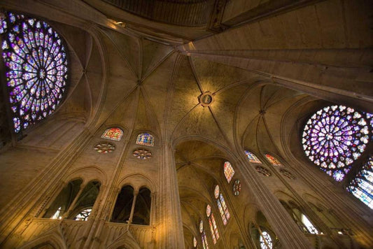 France, Paris Notre Dame Cathedral interior White Modern Wood Framed Art Print with Double Matting by Zuckerman, Jim
