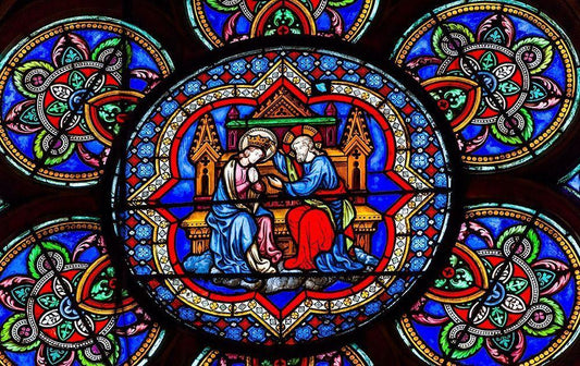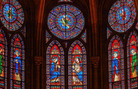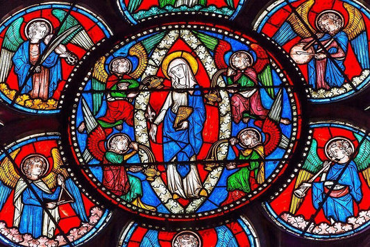 Jesus Christ Mary Angels stained glass-Notre Dame Cathedral-Paris-France White Modern Wood Framed Art Print with Double Matting by Perry, William