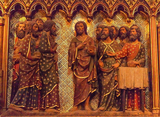 Jesus Christ Twelve Disciples Wooden Panel statues Sculpture-Notre Dame Cathedral-Paris-France White Modern Wood Framed Art Print with Double Matting by Perry, William