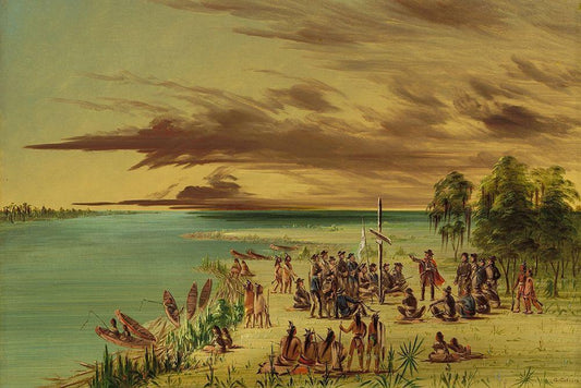 La Salle Claiming Louisiana for France. April 9, 1682 White Modern Wood Framed Art Print with Double Matting by Catlin, George