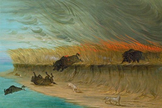 Prairie Meadows Burning White Modern Wood Framed Art Print with Double Matting by Catlin, George
