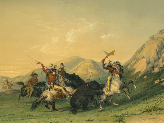 Attacking the Grizzly Bear White Modern Wood Framed Art Print with Double Matting by Catlin, George