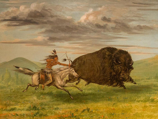 Indian Killing Buffalo with Bow and Arrow White Modern Wood Framed Art Print with Double Matting by Catlin, George