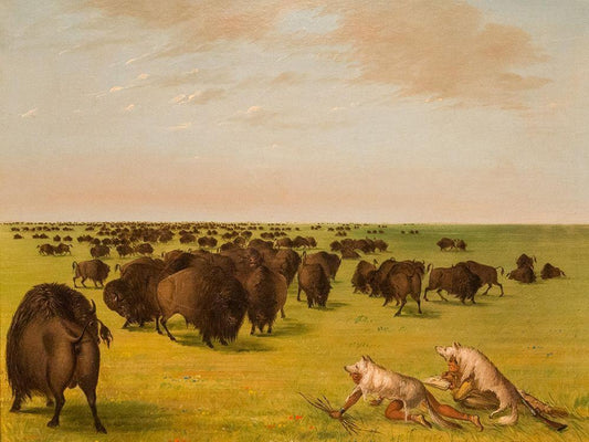 Buffolo Herd Grazing White Modern Wood Framed Art Print with Double Matting by Catlin, George
