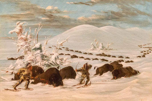 Winter Sport of Killing Buffalo White Modern Wood Framed Art Print with Double Matting by Catlin, George