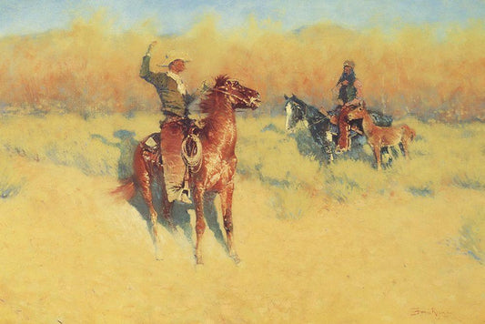 The Long-Horn Cattle Sign-1908 White Modern Wood Framed Art Print with Double Matting by Remington, Frederic