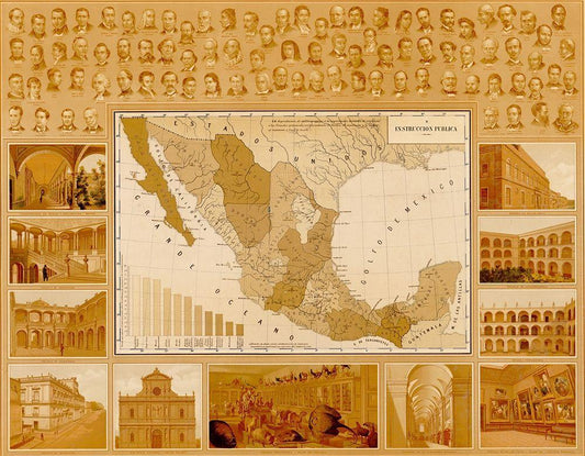 Public Education in Mexico White Modern Wood Framed Art Print with Double Matting by Vintage Maps