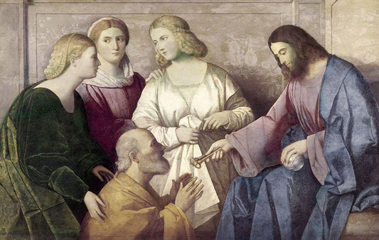 Jesus Gives The Keys To Peter White Modern Wood Framed Art Print with Double Matting by Catena, Vincenzo di Biagio