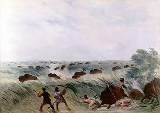 Hunting Buffalo White Modern Wood Framed Art Print with Double Matting by Catlin, George