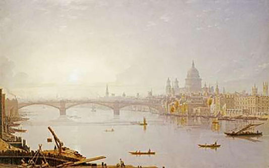 Southwark Bridge and St. Pauls Cathedral White Modern Wood Framed Art Print with Double Matting by Robson, George Fennel