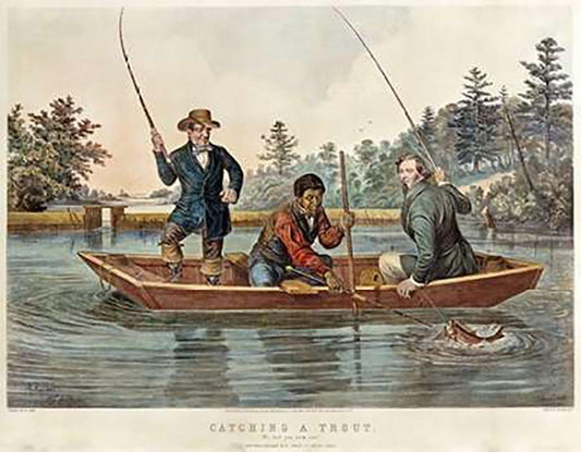 Catching a Trout - We Hab You Now, Sar! White Modern Wood Framed Art Print with Double Matting by Tait, Arthur Fitzwilliam