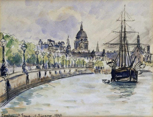 London, St.Pauls Cathedral White Modern Wood Framed Art Print with Double Matting by Pissarro, Camille