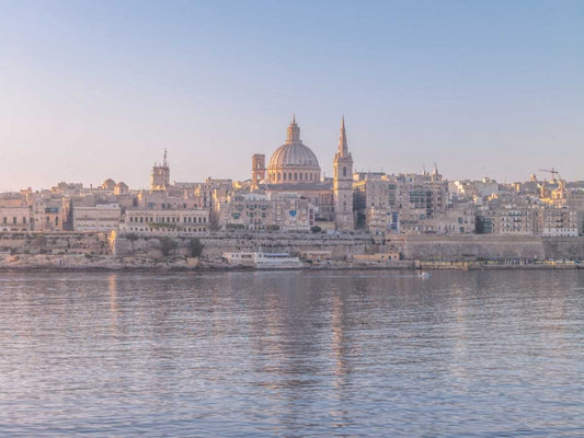 St Pauls Cathedral and Carmelite church at Valetta, Malta White Modern Wood Framed Art Print with Double Matting by Frank, Assaf