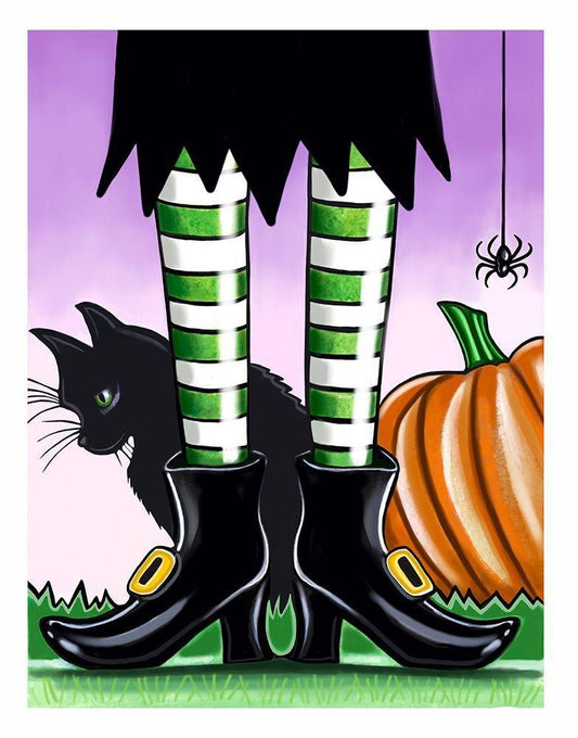 Halloween Witch White Modern Wood Framed Art Print with Double Matting by Tyndall, Elizabeth