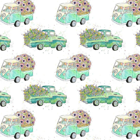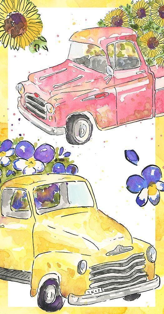 Flower Truck Collection I White Modern Wood Framed Art Print with Double Matting by McGuire, Catherine