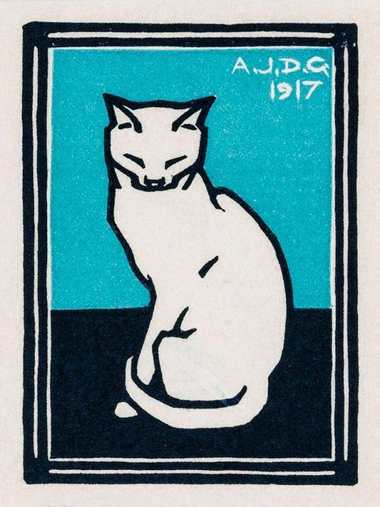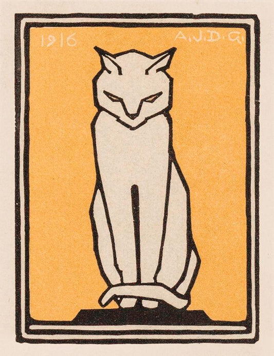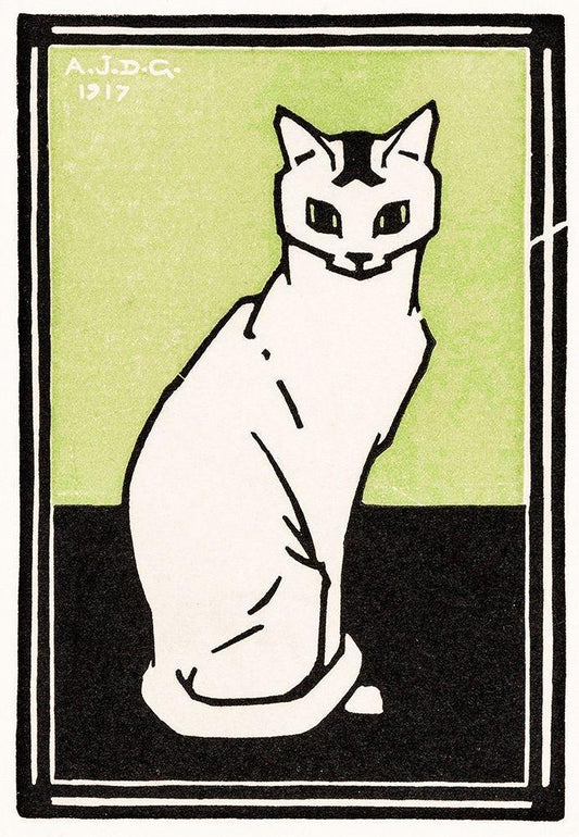 Sitting cat White Modern Wood Framed Art Print with Double Matting by De Graag, Julie