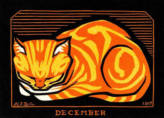 December Cat White Modern Wood Framed Art Print with Double Matting by De Graag, Julie