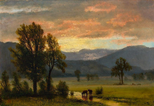 Landscape with cattle White Modern Wood Framed Art Print with Double Matting by Bierstadt, Albert