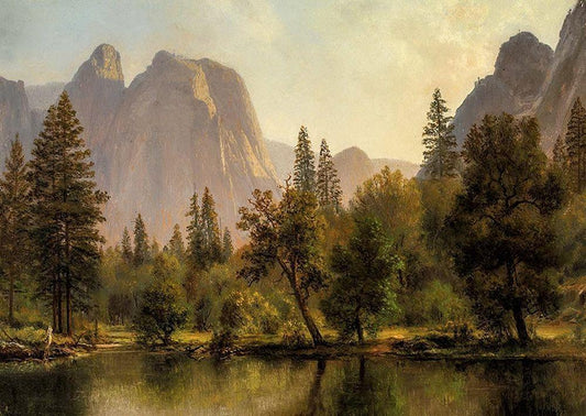 Cathedral Rocks, Yosemite Valley White Modern Wood Framed Art Print with Double Matting by Bierstadt, Albert
