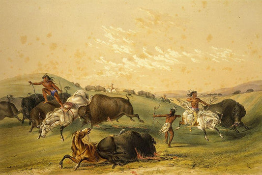 Buffalo Hunt, A Numerous Group White Modern Wood Framed Art Print with Double Matting by Catlin, George