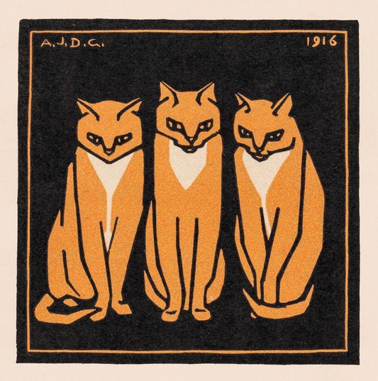 Three cats White Modern Wood Framed Art Print with Double Matting by De Graag, Julie