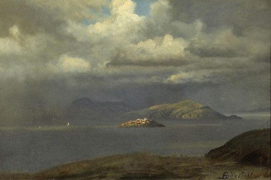 Alcatraz, San Francisco Bay White Modern Wood Framed Art Print with Double Matting by Bierstadt, Albert