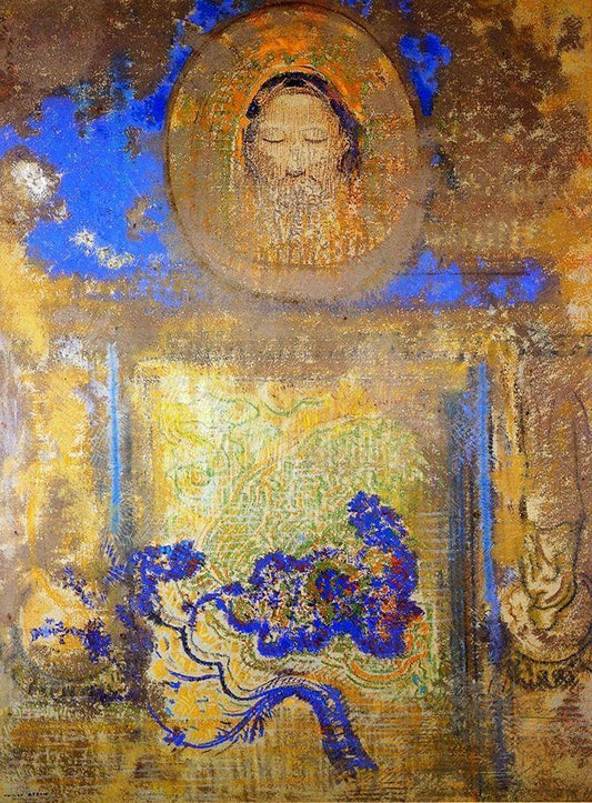 Evocation White Modern Wood Framed Art Print with Double Matting by Redon, Odilon