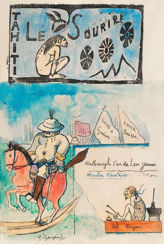 Caricatures of Gauguin and Governor Gallet, with headpiece from Le sourire White Modern Wood Framed Art Print with Double Matting by Gauguin, Paul