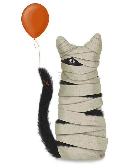 Halloween Mummy Cat White Modern Wood Framed Art Print with Double Matting by Fab Funky