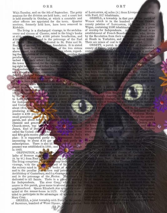 Black Cat with Autumn Hat, Full White Modern Wood Framed Art Print with Double Matting by Fab Funky