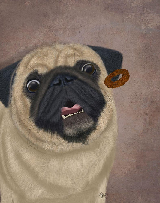Pug, Catch 1 White Modern Wood Framed Art Print with Double Matting by Fab Funky