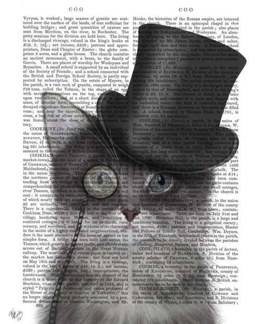 Cat, Grey with Top Hat White Modern Wood Framed Art Print with Double Matting by Fab Funky