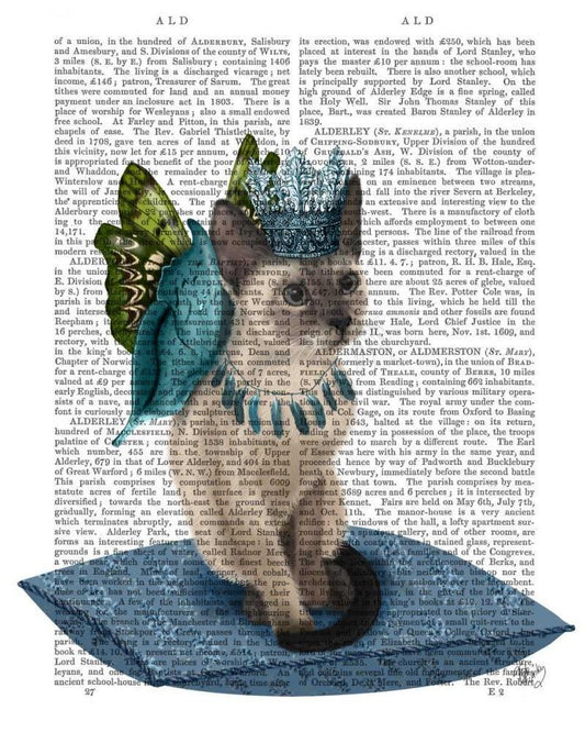 Border Terrier with Blue Bobble Hat White Modern Wood Framed Art Print with Double Matting by Fab Funky