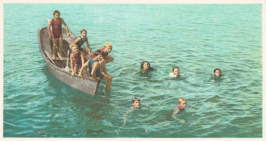 Diving For Coins, Santa Catalina, Calif., 1898 White Modern Wood Framed Art Print with Double Matting by Detroit Publishing Co.