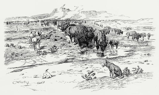 Natures Cattle, 1899 White Modern Wood Framed Art Print with Double Matting by Russell, Charles Marion