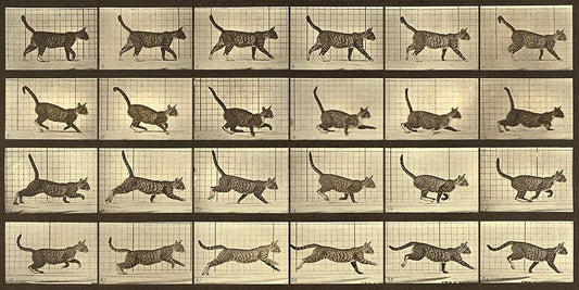 Motion Study: Running Cat White Modern Wood Framed Art Print with Double Matting by Muybridge, Eadweard J.