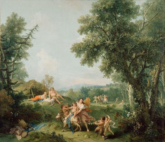 Landscape with the Education of Bacchus White Modern Wood Framed Art Print with Double Matting by Zuccarelli, Francesco
