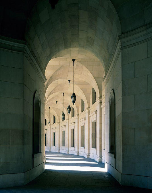 Arched architectural detail in the Federal Triangle located in Washington, D.C. White Modern Wood Framed Art Print with Double Matting by Highmith, Carol