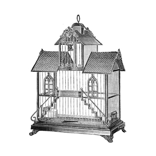 Etchings: Birdcage - Victorian house with steps. White Modern Wood Framed Art Print with Double Matting by Catalog Illustration