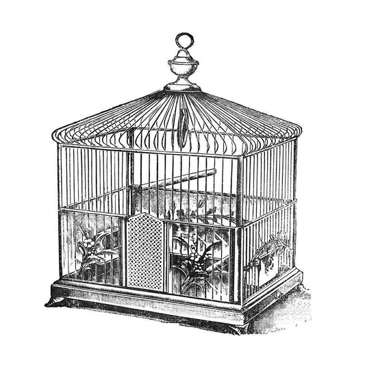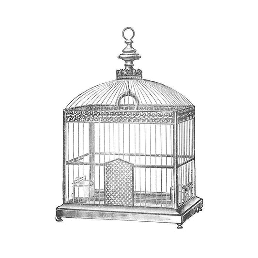 Etchings: Birdcage - Dome top, spindle corners, vine detail base. White Modern Wood Framed Art Print with Double Matting by Catalog Illustration