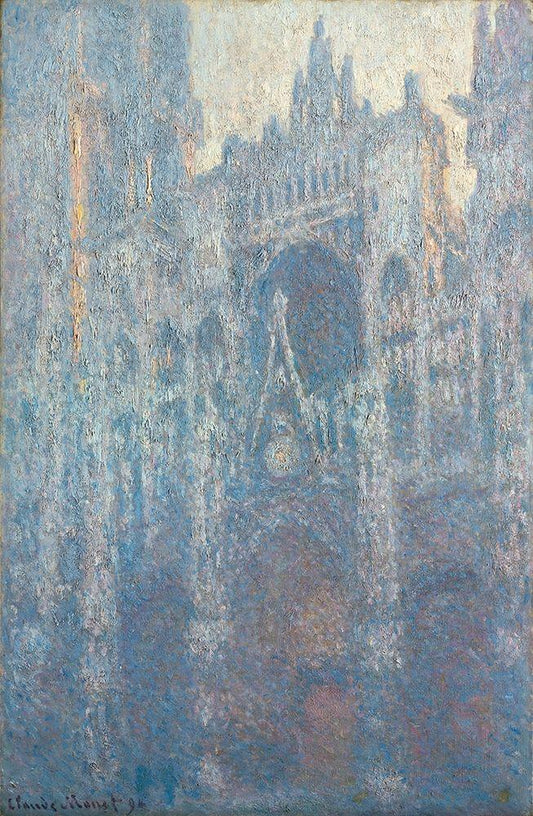 The Portal of Rouen Cathedral in Morning Light White Modern Wood Framed Art Print with Double Matting by Monet, Claude