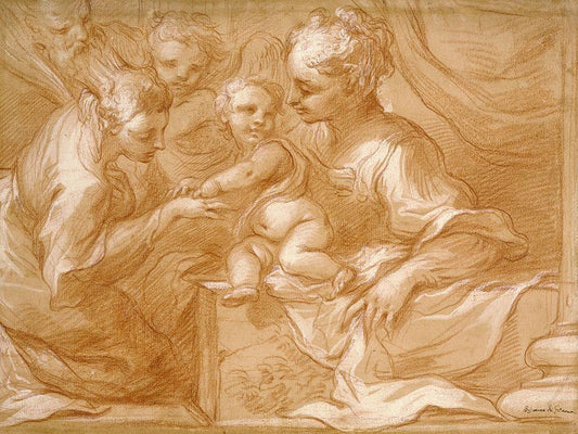 Holy Family with Saints Anne, Catherine of Alexandria, and Mary Magdalene White Modern Wood Framed Art Print with Double Matting by Nosadella