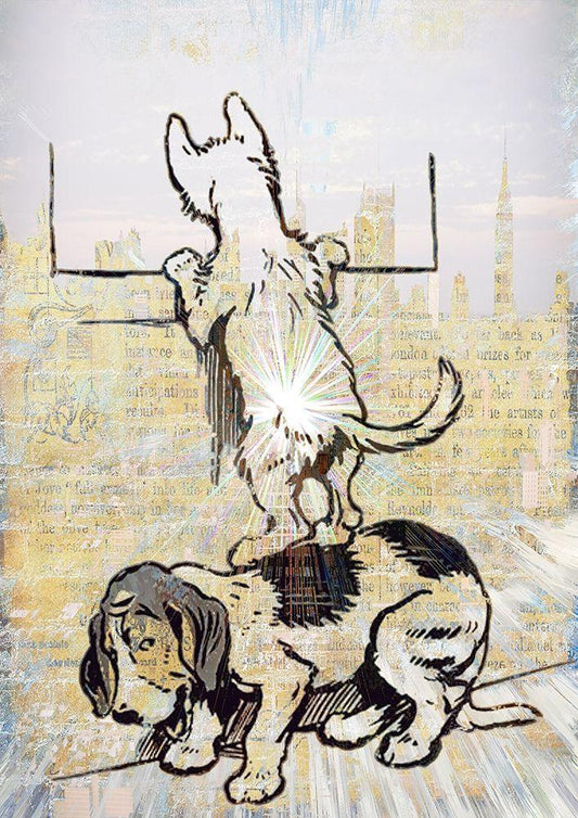 Cowboy Puppy White Modern Wood Framed Art Print with Double Matting by Dawson, Robert