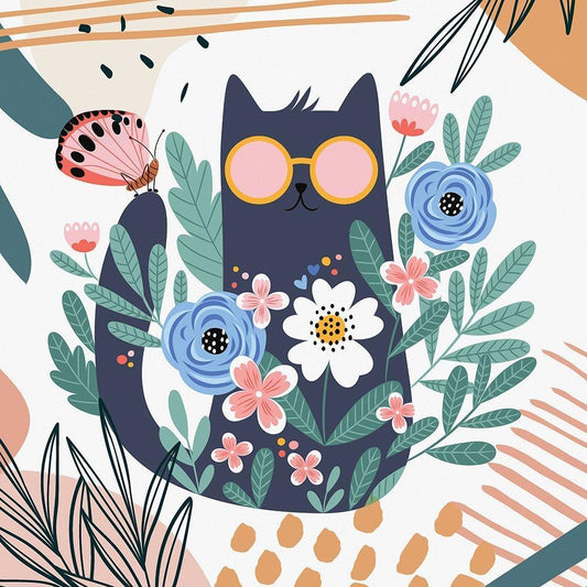 Boho Cat 553 White Modern Wood Framed Art Print with Double Matting by Bolokofsky, Ronald